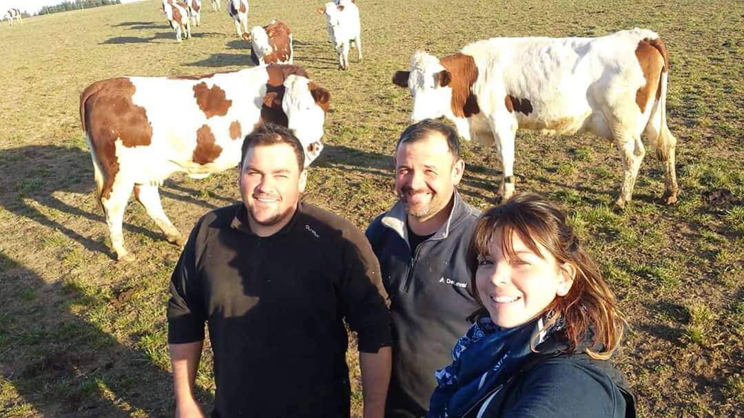 Sylvain Peyron : Nous sommes essentiellement producteurs de lait bio que l’on vend en partie à Sodiaal, ainsi qu’à la ferme. On élève une centaine de vaches laitières de race Montbéliarde, également des génisses pour le renouvèlement. Nous sommes trois associés à travailler au sein du Gaec.