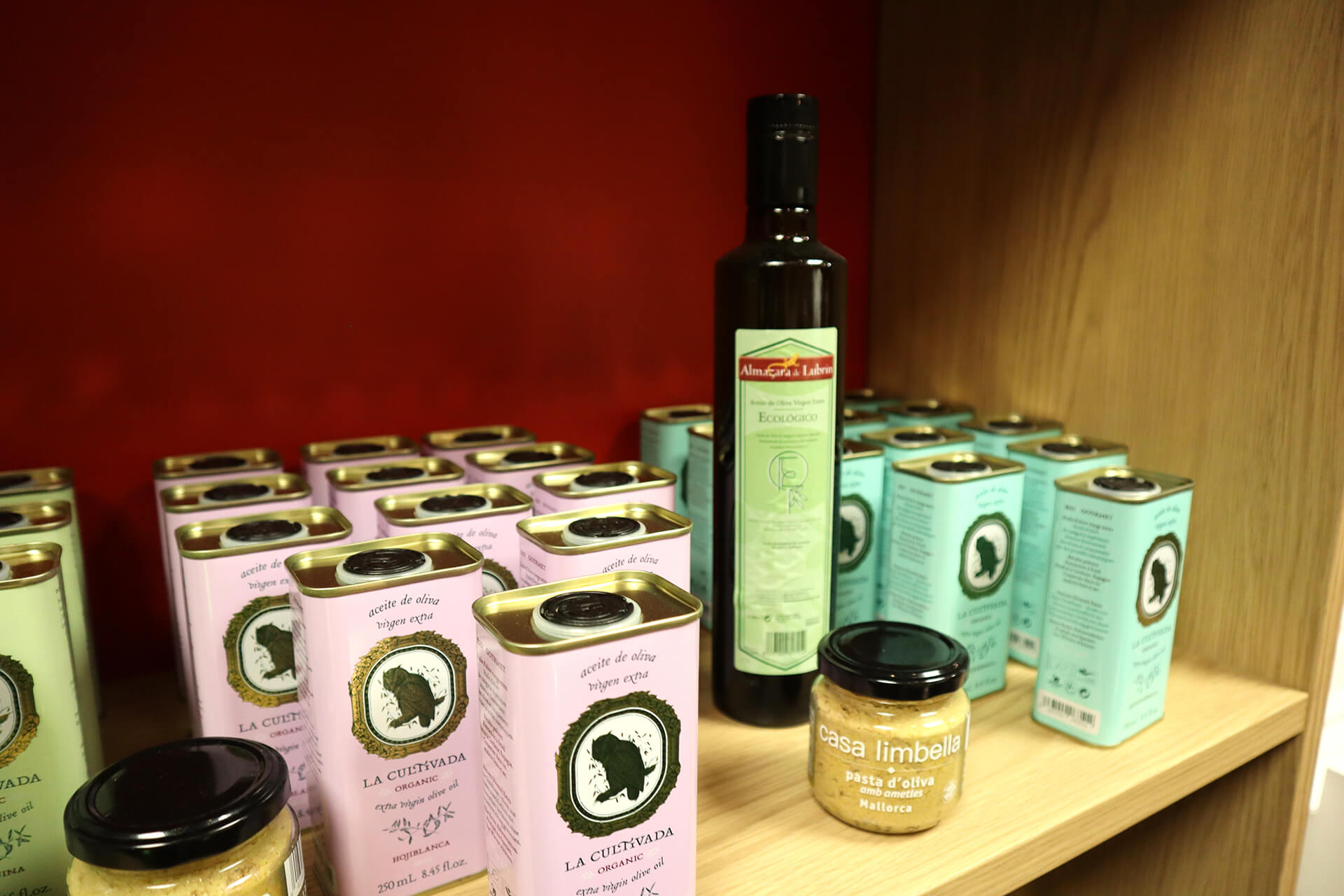 Il y a bien sûr de la charcuterie, du jambon ibérique, 100% Pata Negra, 75% ibérique, mais aussi de l’AOP Teruel, du chorizo et tout ce qu’il faut pour agrémenter les plats. Il y a également des kits pour faire de la paella chez soi et des huiles d’exception travaillées en biodynamie par un producteur de Cordoue, des fruits de mer en conserves, des fromages Manchego, des gazpachos et aussi quelques bouteilles de vins qui ont du caractère.