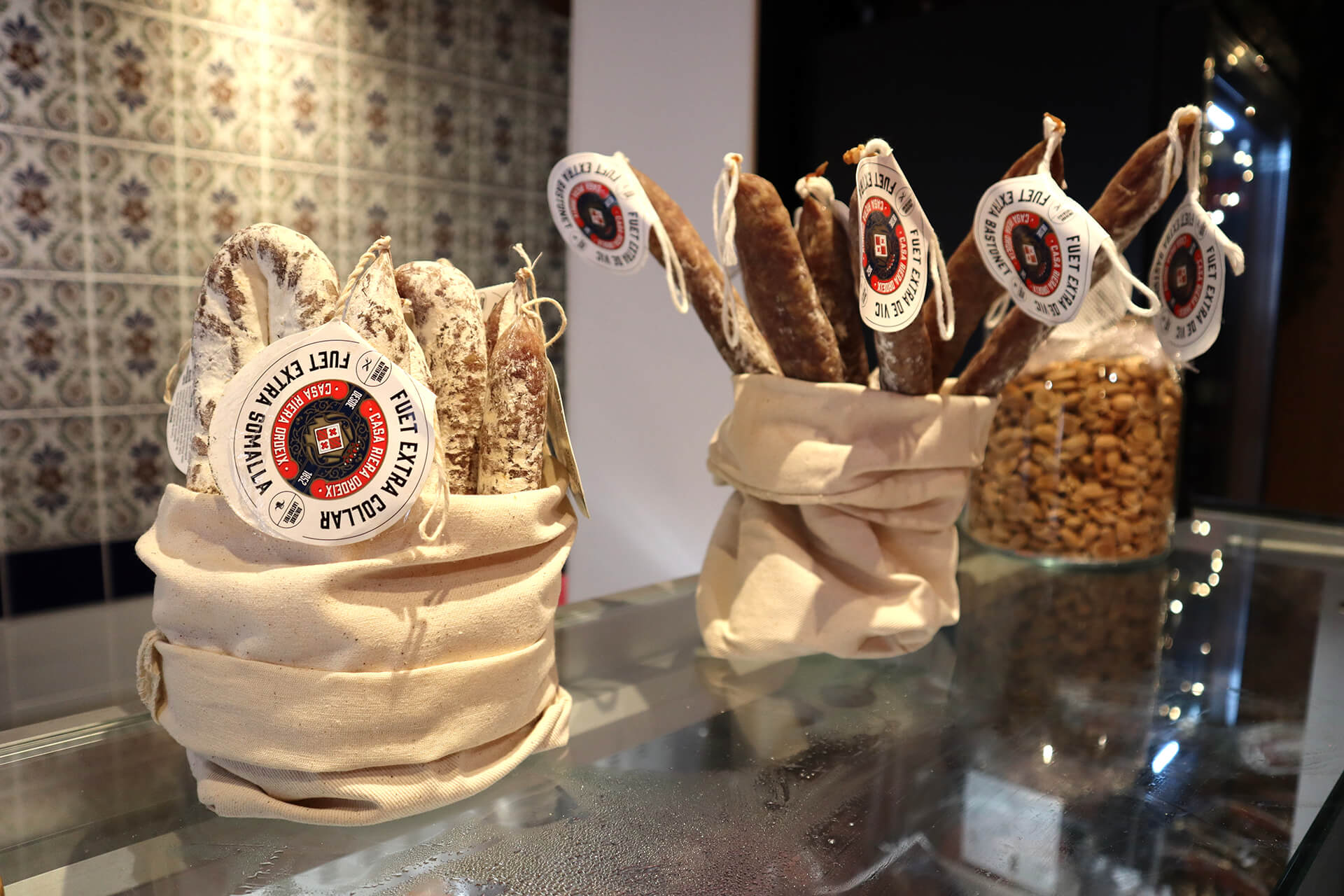 Tout d’abord, je suis quasiment certaine d’être la seule à vendre le Pata Negra ici ! C’est le cas également des anchois que je propose en rayons. Leur goût réveille les papilles ! Et puis, il y a la Sobrasada qui est une sorte de rillettes aux chorizo mélangée avec des épices. Ça se mange avec une tranche de pain grillé et un peu d’huile d’olive. Il y a aussi des tartinables comme les miettes de thon aromatisées qui sont très appréciées lors d’une soirée apéro.