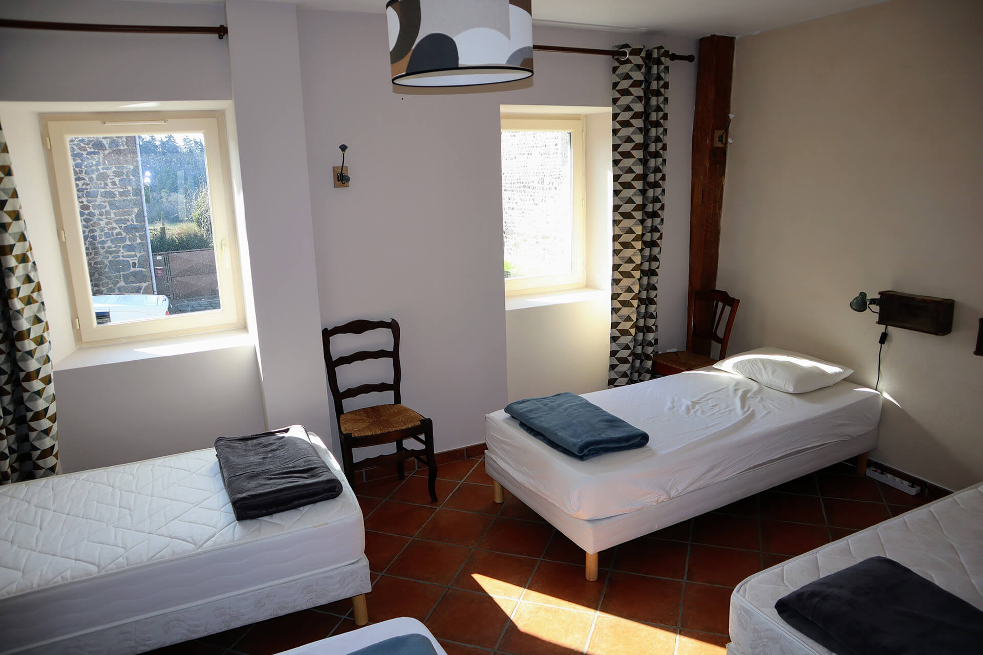 Cloé Boucart : Ici, on a voulu faire quelque chose de simple, mais convivial et chaleureux. On a rafraîchi les logements qui faisaient office déjà de chambres d’hôtes, et on les a aménagés à notre goût. La pièce de vie a été ouverte. On dispose d’une chambre double privative et trois chambres dotées de quatre lits simples.