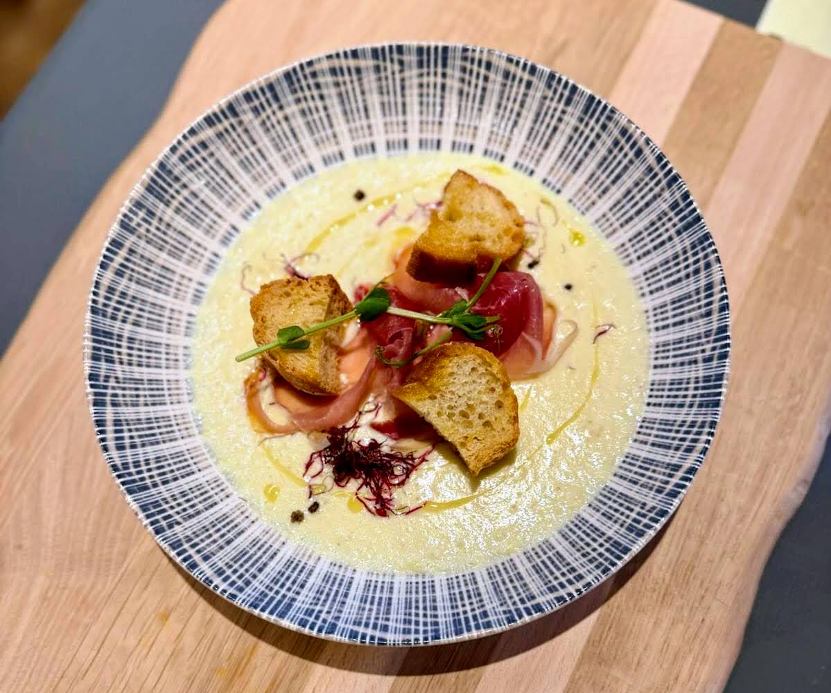 Valentin Huji : Je me suis tout d’abord formé en passant un Bac Pro, avec une mention en pâtisserie. Ensuite, j’ai travaillé au restaurant L’Ancelois à Saint-Julien-d’Ance aux côtés de Thibaut Martin, après avoir travaillé pendant cinq ans chez un traiteur à Lyon.